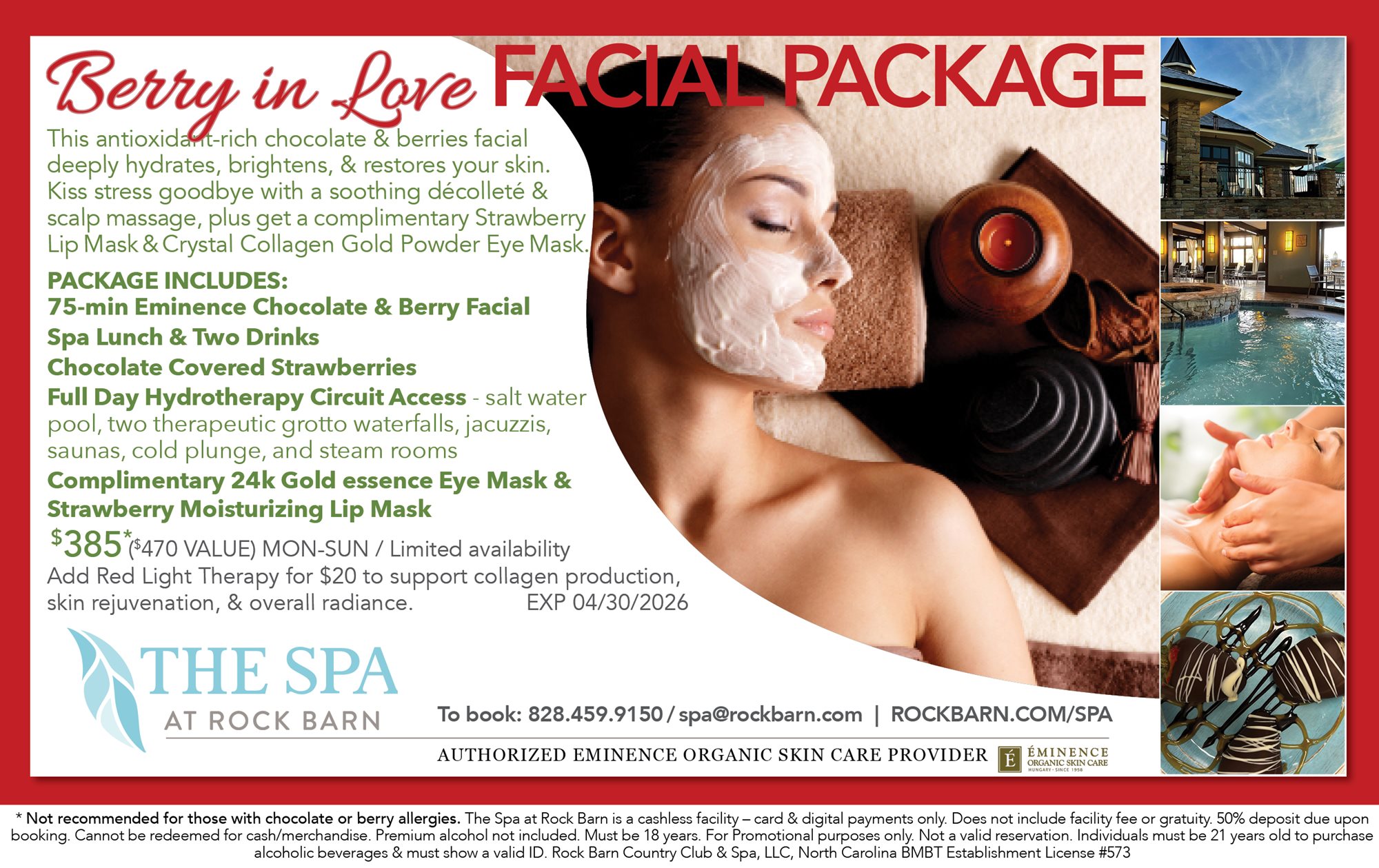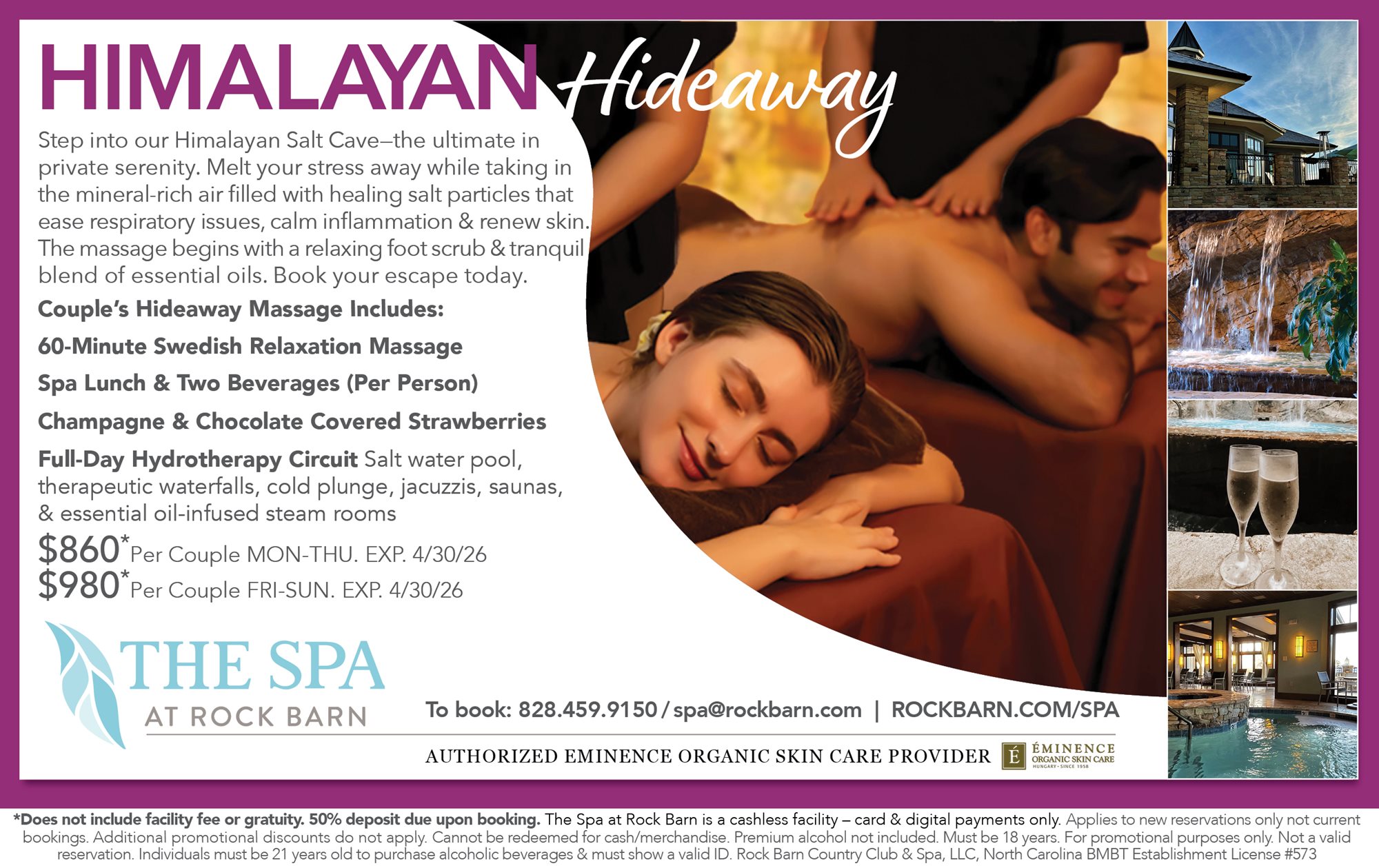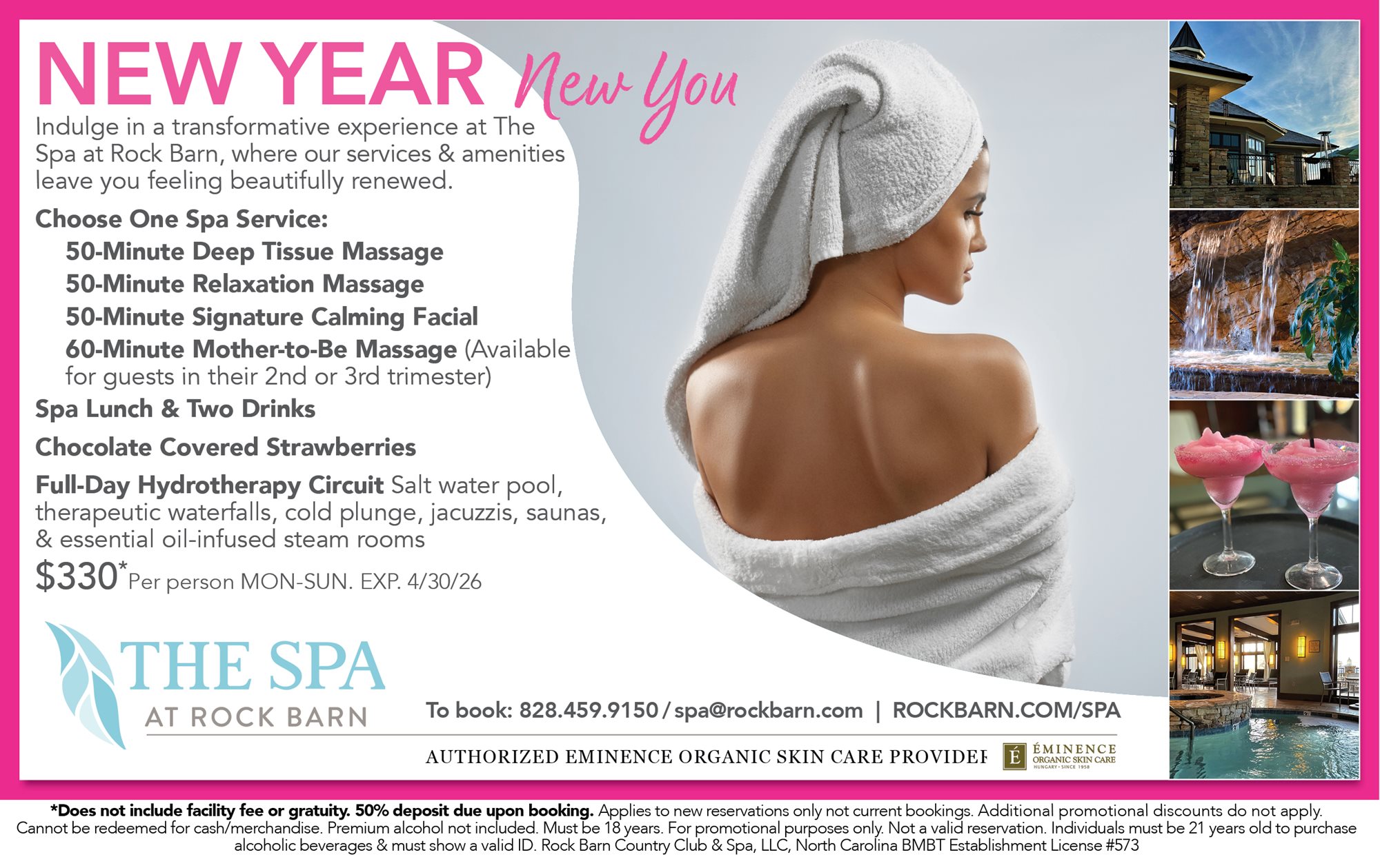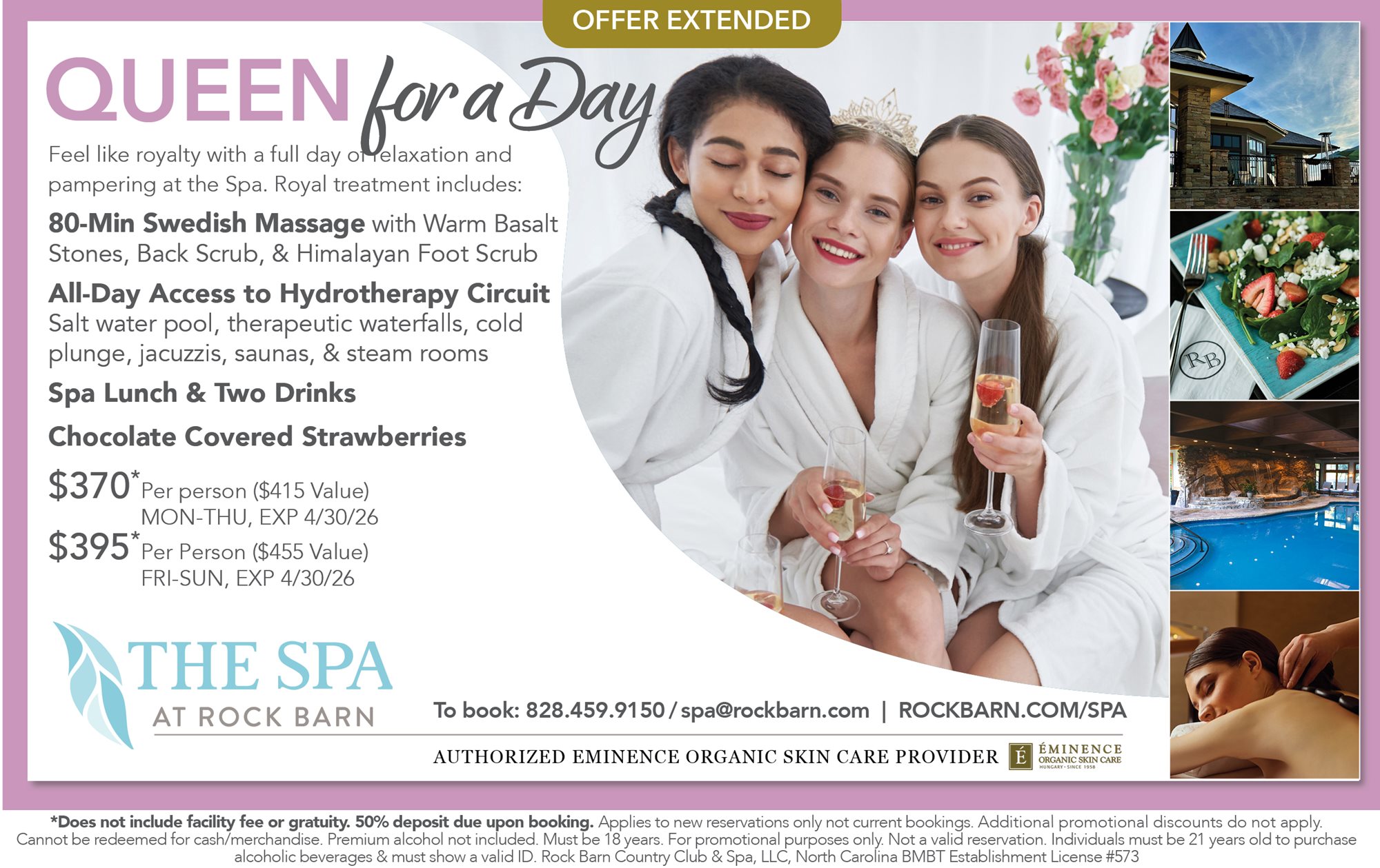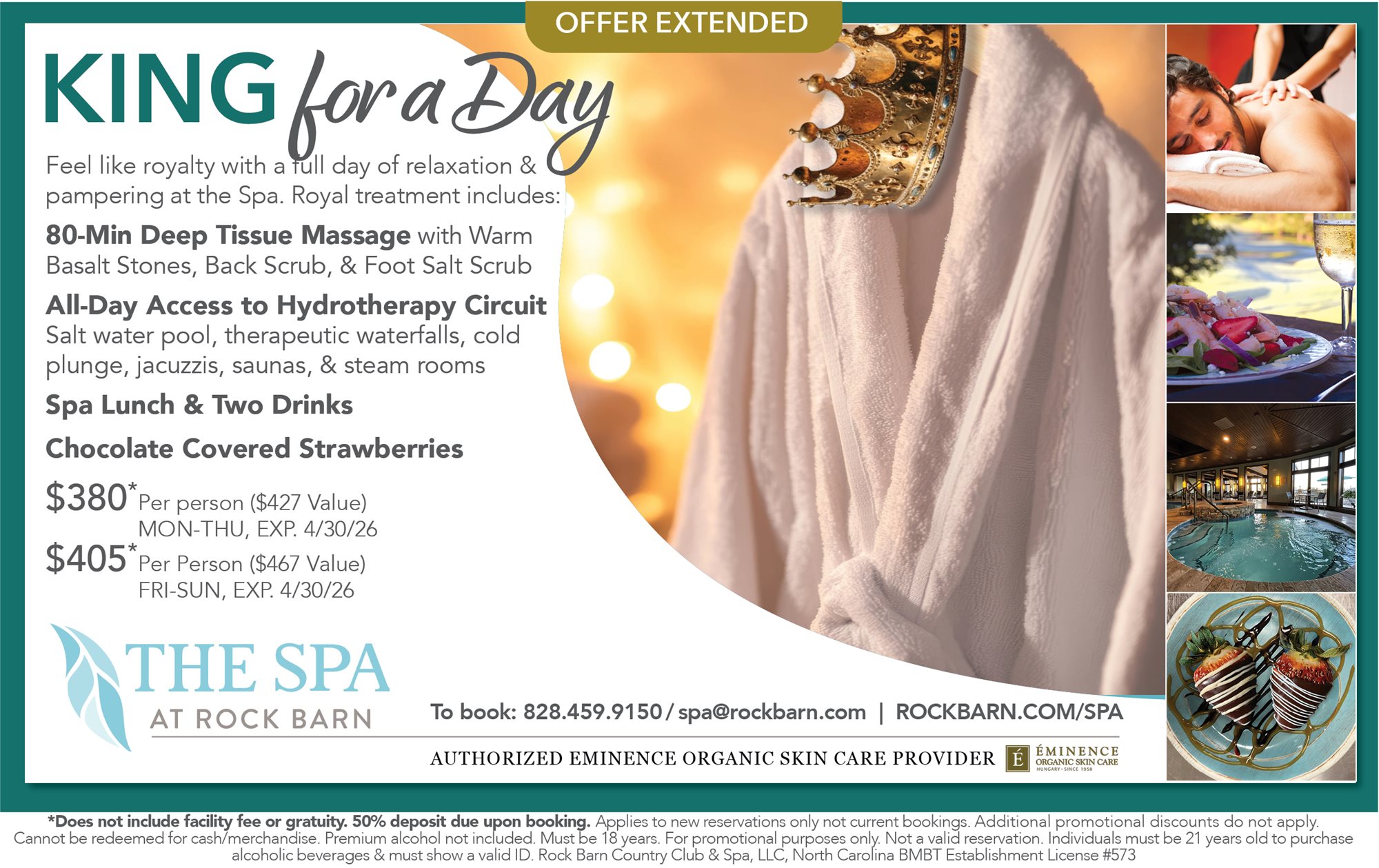 Effective May 1, 2026, a 13% spa facility fee will be applied to all spa services and packages.