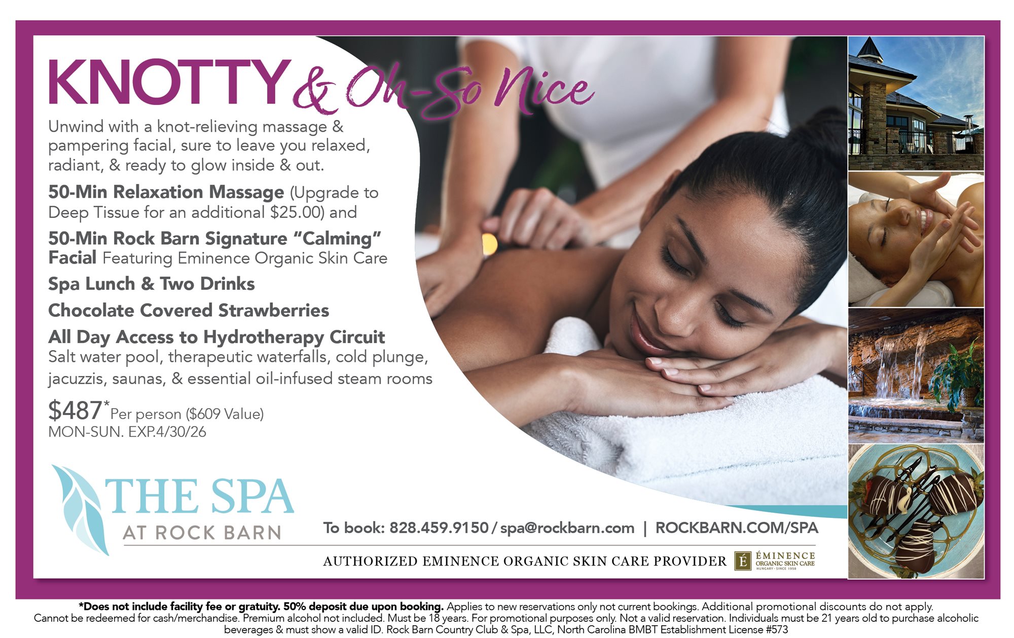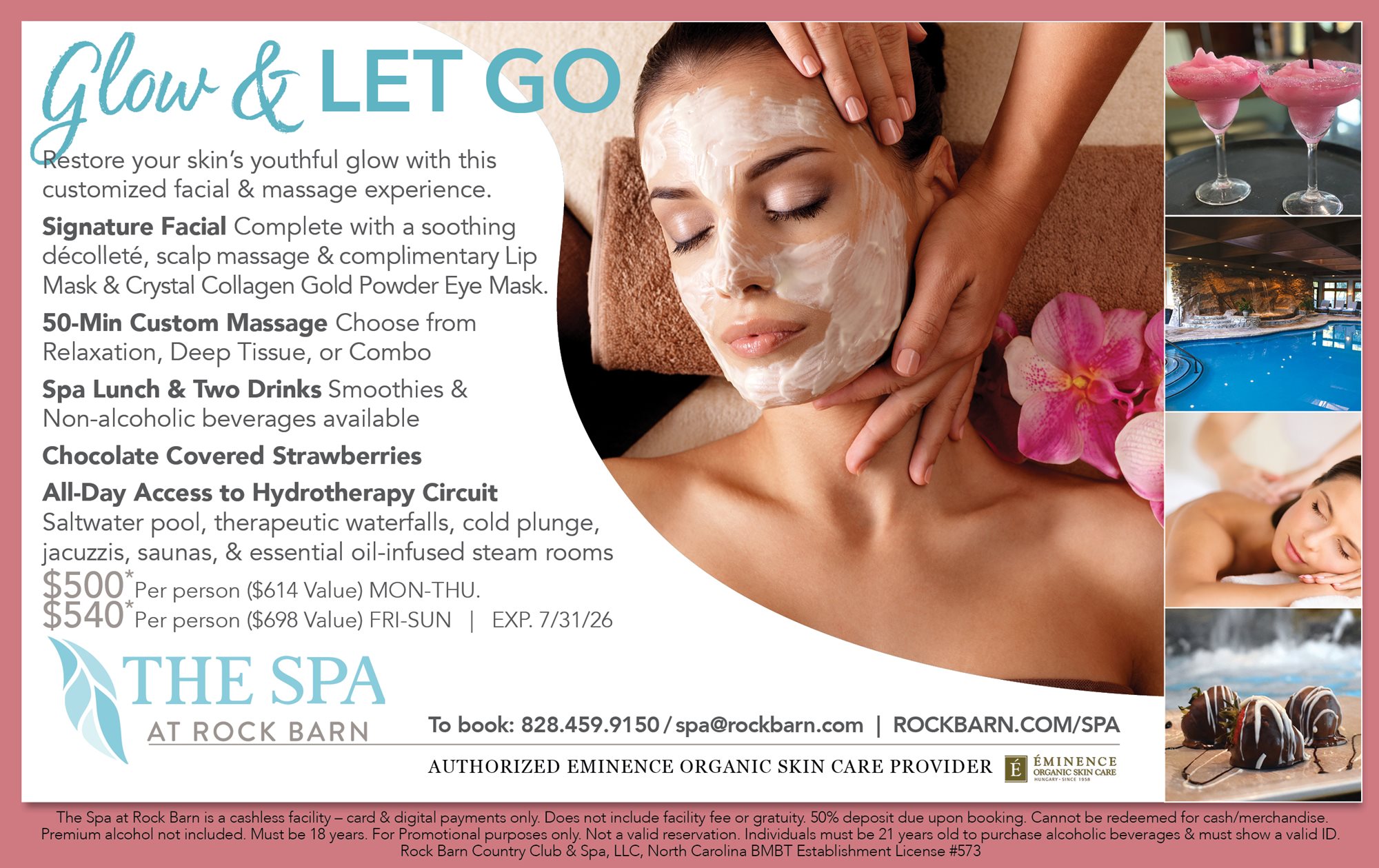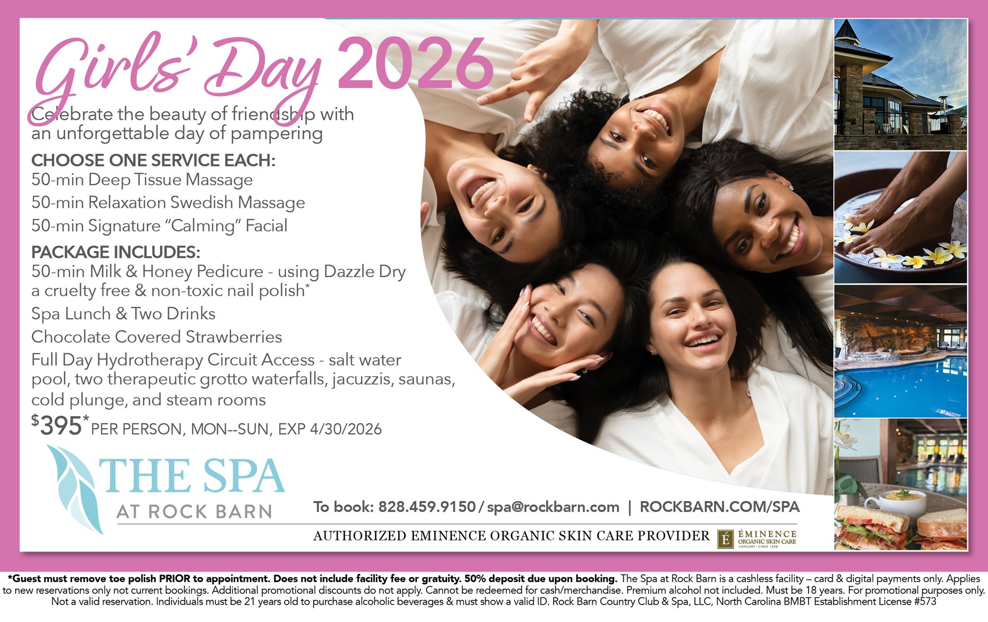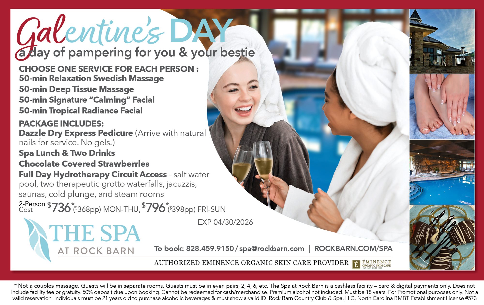 All packages must be booked prior to your visit. Guests must be 18 years of age or older to access the locker rooms and hydrotherapy circuit. For more Frequently Asked Questions & Policy: Visit FAQ & Spa Policies