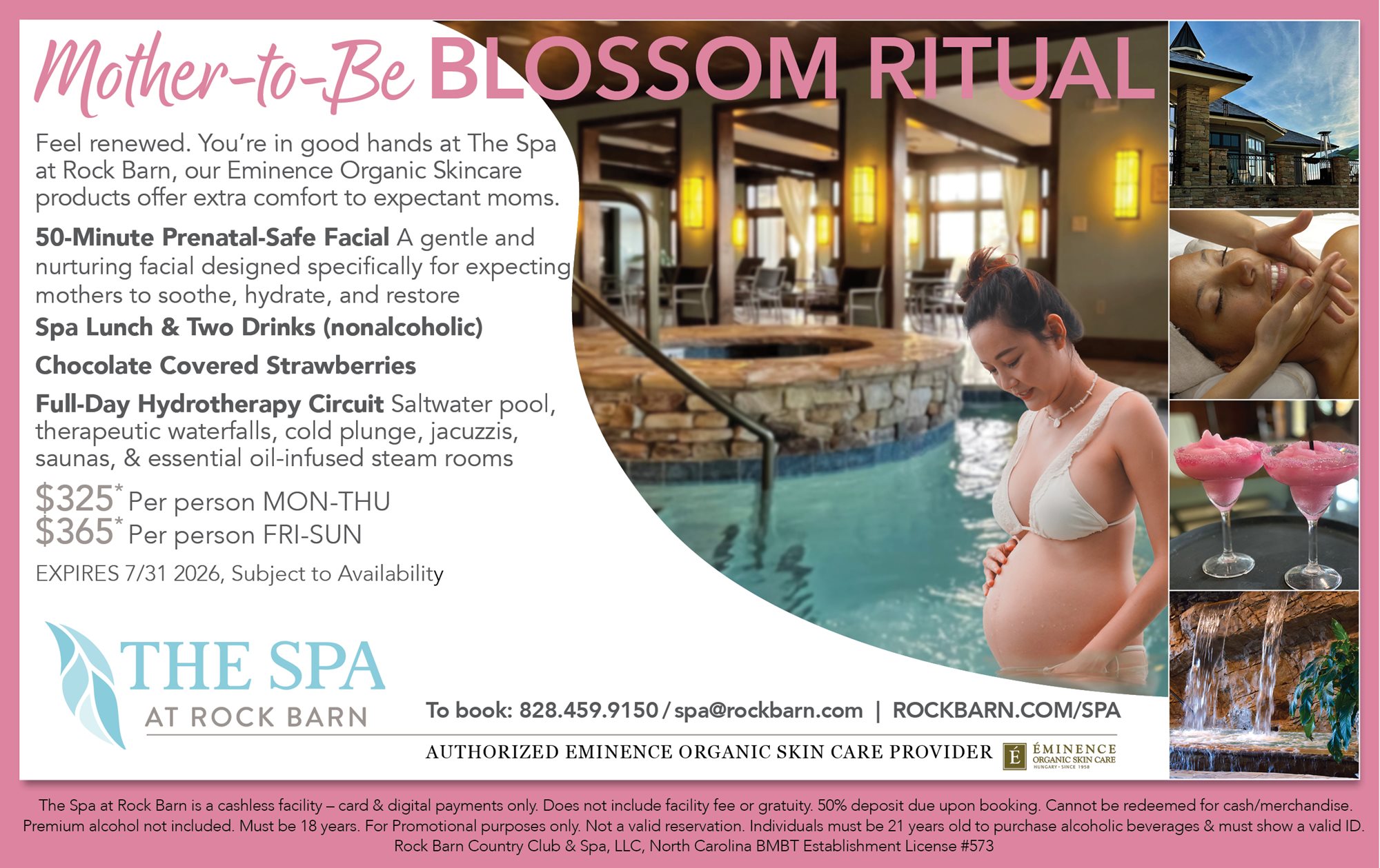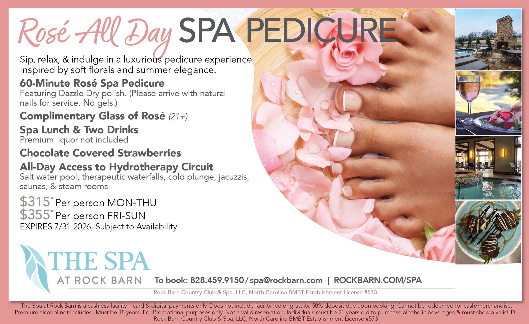 This fee supports the overall spa experience, including hydrotherapy access, robes, sandals, towels, laundry, and spa amenities. We appreciate your understanding and look forward to welcoming you.
